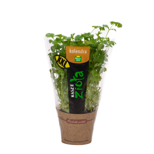 Kolendra w doniczce marki Pokarm Życia ma korzenny, lekko cytrusowy i anyżkowy smak. Liście tej rośliny doskonale doprawiają mięsa, ryby i owoce morza. Na polskie stoły kolendra dotarła z basenu Morza Śródziemnego, szybko zyskując szerokie zastosowanie. Dziś jest bardzo popularną przyprawą, szczególnie w kuchniach krajów na południu Europy i północy Afryki. jej liści