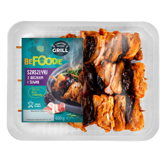 SUPERDROB Szaszłyk z mięsa nogi kurczaka z boczkiem wędzonym i śliwką