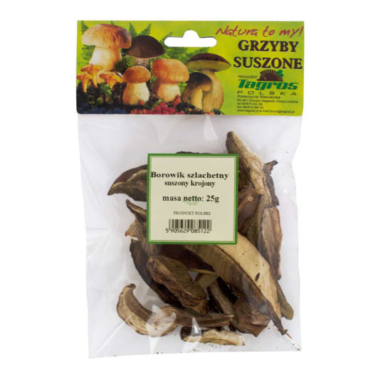 Charakteryzujący się oryginalnym aromatem Borowik Suszony od marki Tagros to idealny dodatek w kuchni polskiej i europejskiej. Stosowany do sosów makaronów, zup, pierogów i wielu innych potraw. Pokrojony na niewielkich rozmiarów kawałki grzyb, jest suszony metodą tradycyjną. Firma Tagros nie wykorzystuje w tym celu żadnych konserwantów.
