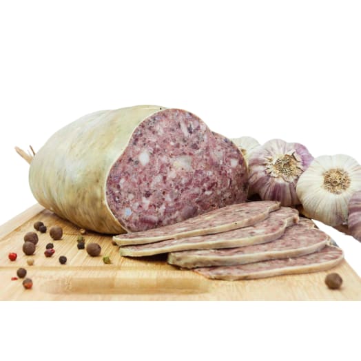 Wędlina podrobowa, salceson w osłonce naturalnej, kształt nadany przez osłonkę, wysoka zawartość smacznego mięsa z głów, przyprawy naturalne.